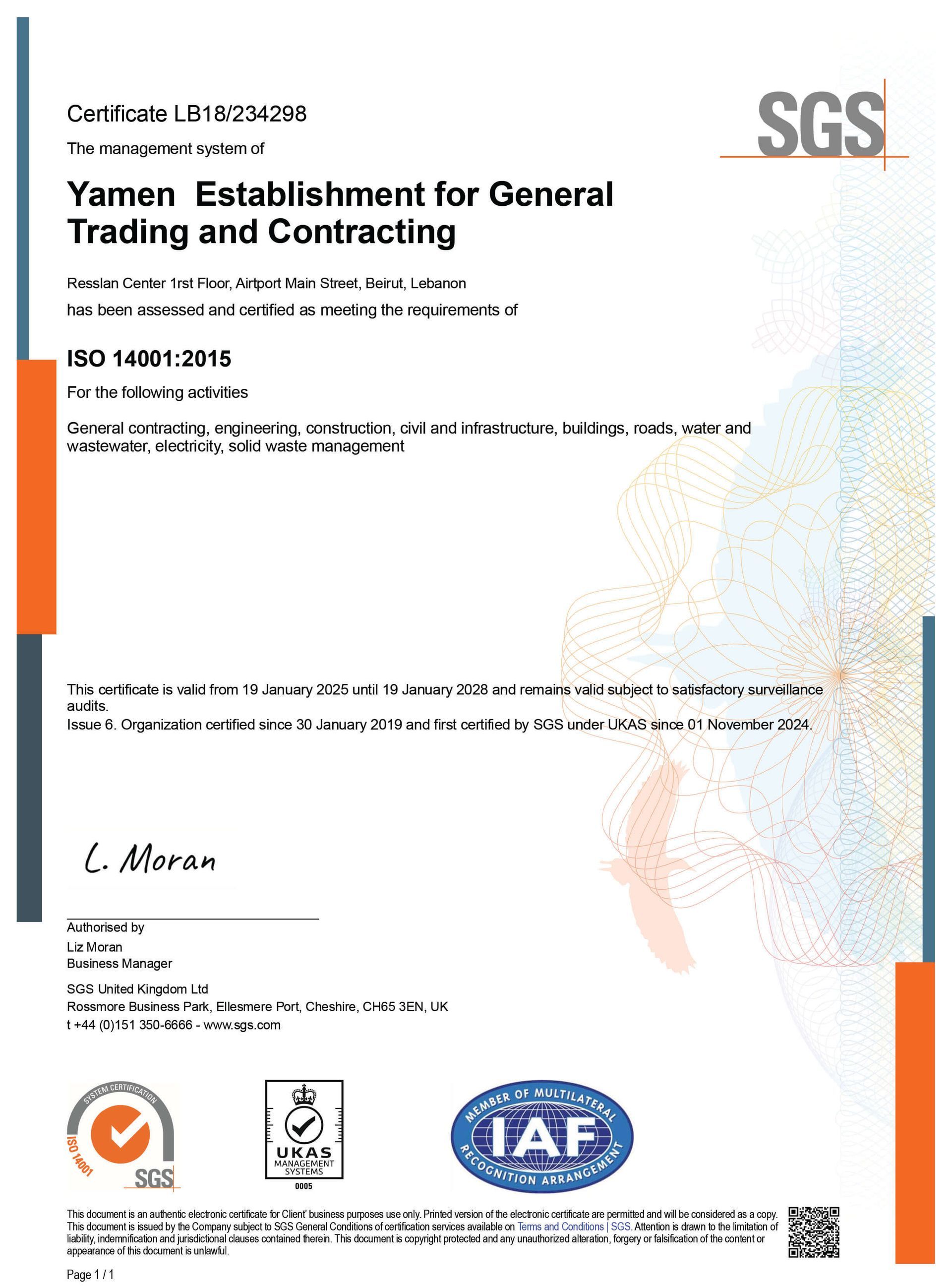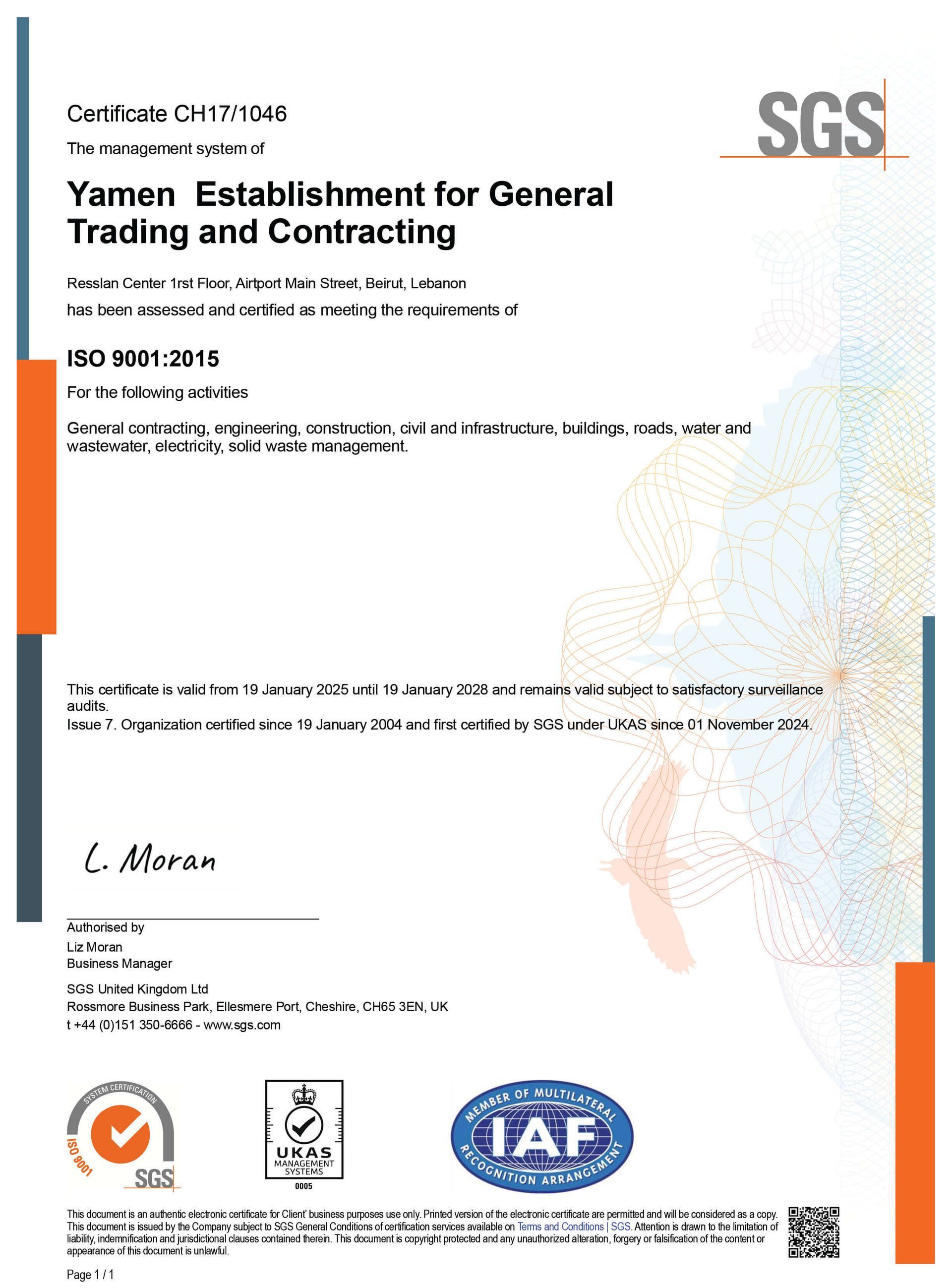 Yamen possesses over 30 years of gained experience in diverse construction fields and is classified and qualified in the following administrations and establishments: