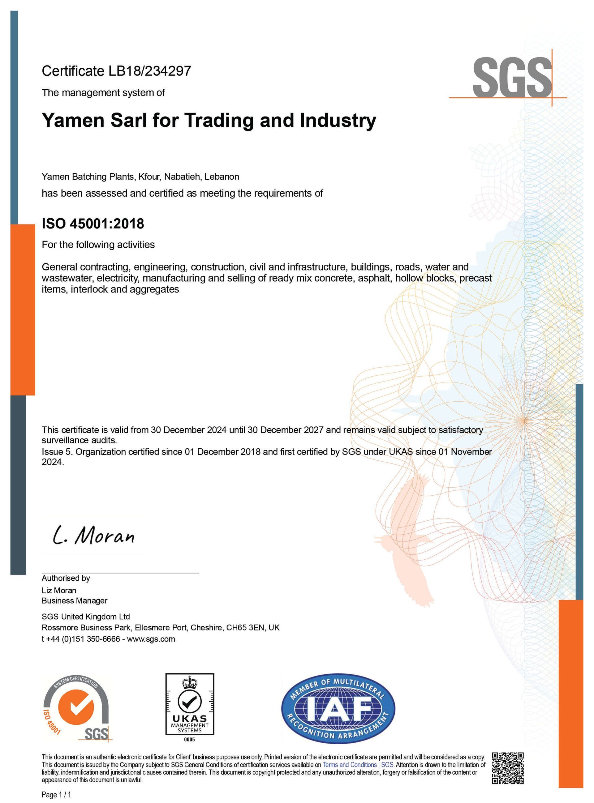 Besides, Yamen holds an International Quality Certificate relevant to ISO 9001:2015 in addition to ISO 45001:2018 and ISO 14001:2015 in all the fields of its activities.